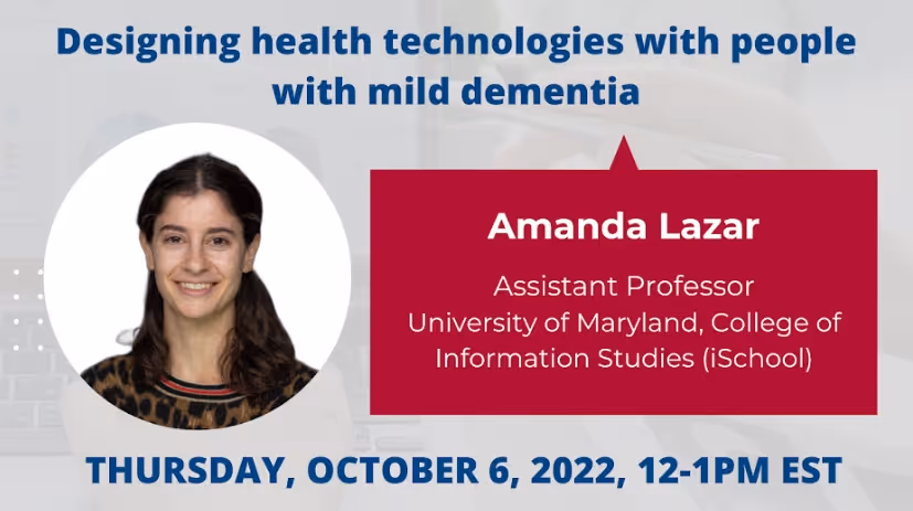 PennAITech will launch its webinar series at 12 p.m. ET on Thursday, Oct. 6, with a talk from Dr. Amanda Lazar on how to design health technologies with people with mild dementia. Register here and check out the full list of upcoming speakers in the series!